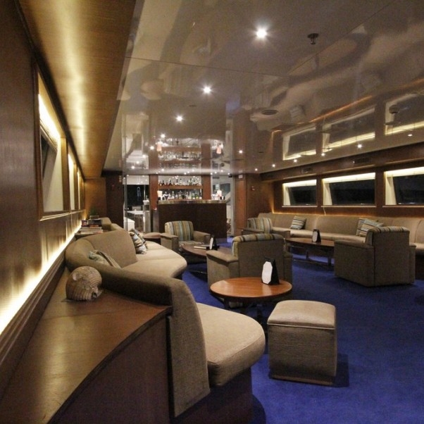 Life on board centers around the Indoor / Outdoor lounge and its American bar, on Upper Deck. The classy dining room located on Main Deck is surrounded by large windows. The spacious Sun deck is the ideal place to bask under the sun, read a good book or just gaze at the scenery. The swimming platform on Harmony G stern enables you to swim when weather and anchorage conditions permit.