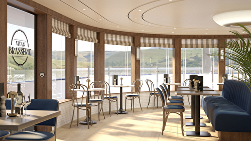 The VIVA ship fleet continues to grow: in 2026, the VIVA BEYOND will be sailing on the picturesque Seine. This unique ship combines an upscale feel-good atmosphere with the charm and elegance of the French lifestyle. With a length of 110 m, the VIVA BEYOND offers space for 112 guests in a total of 56 cabins, half of which are suites measuring up to 30 m². A special highlight on board: three first-class restaurants – including the MOMENTS, which takes you into the world of fine dining at star level – as well as a bar in the panorama lounge, which invites you to indulge in culinary delights. In the spacious treatment area, you can stay active in the fitness room with modern equipment or enjoy pure relaxation with a massage or wellness session. The spacious sun deck with pool provides the perfect backdrop to experience the impressive views of the varied landscape.